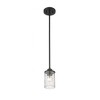 An air of simplicity creates sophistication and style in a modern or transitional space when this one-light mini-pendant shows off its classic elegance. This mini-pendant from the Beckett collection reflects a hint of nautical influence, blending a brushed nickel finish steel mount and down rod with a single cylindrical clear seedy glass shade. Bring ambient lighting to a targeted space, illuminating a dinette set, hallway, or breakfast nook. Cord Length: 110.00 Rod Length(s): 1-3, 1-6, 6-12 Dimmable: Yes Shade Included: Yes