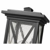 This one-light outdoor post mounted fixture comes in a box-shaped black aluminum cage with a rounded post attachment. Its clear seedy glass finish softly diffuses light to provide a welcoming glow to your front entrance or patio. Compelling X-accents bring dimension and character. Outdoor Living/Deck/Patio Shade Included: Yes Dimmable: Yes Material: Glass, Finish Color: Black, Width: 7.5", Height: 16.5", Length: 7.5", Lamping Type: Incandescent, Number Of Bulbs: 1, Wattage: 100 Watts, Dimmable: Yes, Moisture Rating: Wet Rated