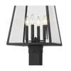 Transform an exterior walkway or garden space with a tribute to old village nautical fare. From the Broughton collection, this four-light outdoor post-mounted fixture offers construction of sleek black aluminum and clear beveled glass panels on its lantern-style shade. Romantic candelabra bulb mounts and a straight base seal the deal on a tasteful look.