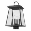 Treat an updated exterior space with a throwback to old time village nautical attitude. From the Broughton collection, this four-light outdoor post-mount fixture offers construction of sleek black aluminum and clear beveled glass panels on its lantern-style shade. Romantic candelabra bulb mounts seal the deal on a tasteful look. Material: Aluminum, Finish Color: Black, Width: 12.5", Height: 21.75", Length: 12.5", Lamping Type: Incandescent, Number Of Bulbs: 4, Wattage: 60 Watts, Dimmable: Yes, Moisture Rating: Wet Rated