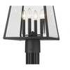 Tempting village nautical ambiance dabbles with updated historical charm in a fixture that brings sophistication to a walkway or landscaped space. From the Broughton collection, this four-light outdoor post-mounted fixture offers construction of sleek black aluminum and clear beveled glass panels on its lantern-style shade. Romantic candelabra bulb mounts and an ornate base seal the deal on a tasteful look.