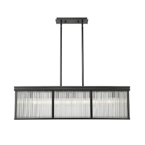 Clean lines and panes of architectural ribbed glass multiply the stylish character of a modern ten-light linear pendant. Striking over a kitchen island or gracing your foyer, it's a distinctive look defined with a matte black finish and vertical striations in the glass that create a hint of opacity while reflecting light to create a warm, welcoming ambiance.