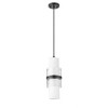 Chic in brushed nickel, this modern one-light pendant is a decorative addition that brings sophisticated energy in any living or dining space. Superbly designed, it centers on a cylinder of etched opal glass that diffuses light beautifully and is augmented with a shorter cylinder of textured clear glass and a decorative cuff in a matching finish. Simply stunning in series over a kitchen island or alone in your den or living room.
