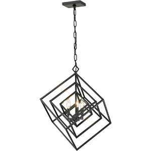Bold geometric shapes nested within themselves inspire the modern design of the Euclid collection. Uniquely layered parallelograms and cubes, encapsulate the inner candelabra. This popular Collection is now available in all Matte Black Finish. Room Recommendation: Dining Room/Foyer/Great Room/Hallway/Kitchen Chain Length: 72.00 Dimmable: Yes Material: Steel, Finish Color: Matte Black, Width: 23", Height: 25", Length: 23", Chain Length: 72", Lamping Type: Incandescent, Number Of Bulbs: 3, Wattage: 60 Watts, Dimmable: Yes, Moisture Rating: Dry Rated