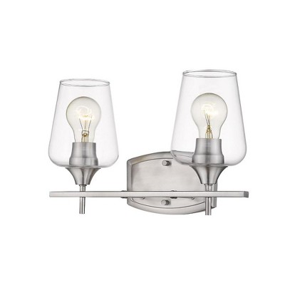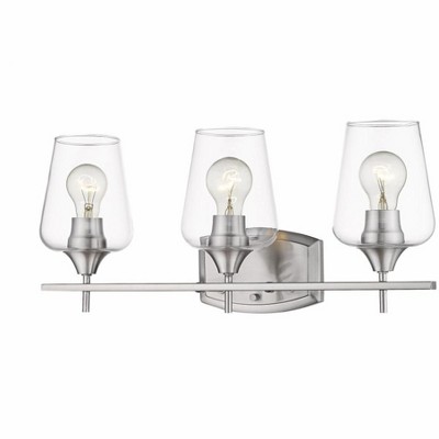 Upscale sophistication with a Mid Century Modern vibe tells the story of this elegant four-light vanity light. A blend of delightful materials offers stunning large glass shades with lovely Brushed Nickel finish metal, delivering a neutral palette that embellishes the look of any transitional bath space and highlights a custom vanity. Bathroom/Powder Room Mounting Direction: Up/Down Shade Included: Yes Dimmable: Yes