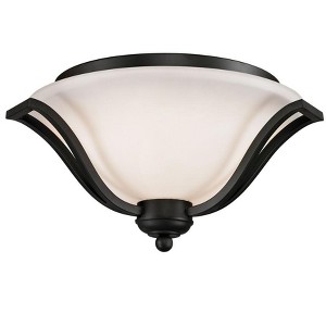 This simple but stunning three light ceiling light has a matte black finish and a matte opal shade. Bedroom/Dining Room/Foyer/Hallway/Kids Room/Kitchen/Living Room/Office/Utility Room Shade Included: Yes Dimmable: Yes Material: Glass, Finish Color: Matte Black, Width: 18.5", Height: 10.25", Lamping Type: Incandescent, Number Of Bulbs: 3, Wattage: 60 Watts, Dimmable: Yes, Moisture Rating: Dry Rated