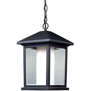 This chain hung outdoor fixture is unique because of its duel-layered construction that gives it a stylish, modern look. The outer glass shell is clear beveled glass, while the inner glass is a matte opal, which creates an inviting warm glow. To complete the look, this outdoor fixture is finished in black, and is made of cast aluminum. Outdoor Living/Porch/Patio Shade Included: Yes Cord Length: 110.00 Dimmable: Yes