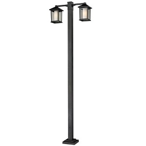 Unique double glass styling and rectangular detailing define the modern styling of this two light outdoor post light. Clear beveled glass on the outside with matte opal inner glass creates an elegant glow, while the cast aluminum hardware finished in black can withstand natures seasonal elements. Outdoor Living/Deck/Patio Shade Included: Yes Dimmable: Yes