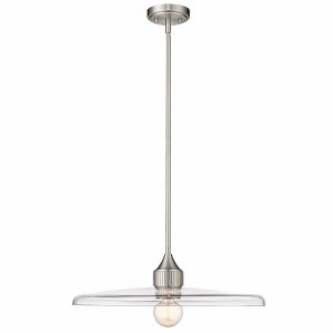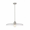 Smooth, glossy opal glass creates a wide disc to diffuse the illumination from this modern one-light pendant. Dramatic in any room, the fixture pairs a sleek brushed nickel finish with a simple, clean silhouette that promises bright illumination in a stylish but understated profile. Material: Steel, Finish Color: Brushed Nickel, Width: 24", Height: 6.75", Length: 24", Lamping Type: Incandescent, Number Of Bulbs: 1, Wattage: 100 Watts, Dimmable: Yes, Moisture Rating: Damp Rated