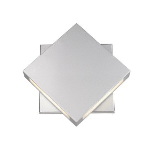Create a modern focal point with this silver wall light. Sleek lines combine to create a layered geometric visual. Color Temperature: 2700K Lumens: 609 CRI: 90 Outdoor Living Shade Included: Yes Dimmable: Yes Material: Aluminum, Finish Color: Black, Width: 11", Height: 11", Length: 2.5", Depth: 2.5", Backplate Width: 8", Backplate Length: 8", Lamping Type: LED, Number Of Bulbs: 2, Wattage: 10 Watts, Cri: 90, Color Temperature: 2700 Kelvin, Lumens: 439, Dimmable: Yes, Moisture Rating: Wet Rated