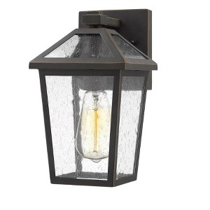 Add ambient lighting to an exterior front or back yard space with a classic fixture reflecting a charming village theme. Made from Rubbed Bronze metal and seedy glass panels, this single-light outdoor wall sconce delivers a stylish upgrade to complete a design-forward look on a structure or fence. Outdoor Living Shade Included: Yes Dimmable: Yes