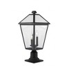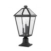 Illuminate an exterior front or back walkway with a classic fixture reflecting a charming village theme. Made from Midnight Black metal and clear beveled glass panels, this three-light outdoor pier mounted fixture delivers a charming upgrade with industrial-inspired attitude and a silhouette that's perfect for lower-level gardens and walkways. Room Recommendation: Outdoor Living/Deck/Patio Dimmable: Yes Shade Included: Yes