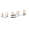 This five light vanity fixture provides a clean modern look with its use of rectangular matte opal shades and chrome geometric inspired hardware. This fixture can either be hung up or down, depending on the needs of the user. Material: Glass, Finish Color: Chrome, Width: 40", Height: 8", Length: 5", Depth: 5", Backplate Width: 4.5", Backplate Length: 8", Lamping Type: Incandescent, Number Of Bulbs: 5, Wattage: 100 Watts, Dimmable: Yes, Moisture Rating: Damp Rated