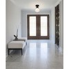 Elevate sophisticated classical interiors with the refined contoured silhouette and smooth surfaces of this restoration style flush mount. A matte opal glass bell shade rests tucked within a heritage brass steel mount detailed with rivet accents that lend an industrial schoolhouse-inspired aesthetic and vintage flair. This classical single light flush mount offers a serene glow, illuminating foyers, hallways and smaller spaces, as it offers a warm metallic touch.