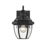 This one-light outdoor wall sconce adds a classic silhouette to the lighting in your patio, deck or porch area. With its one robust bulb, the sconce provides soft, effective illumination. A multi-sided clear beveled glass shade has a black steel frame, creating an elegant impression. Outdoor Living Shade Included: Yes Dimmable: Yes