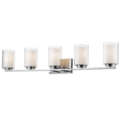 Clean, graceful lines of the arms + glass shades define the Willow family. Chrome fixtures and inner matte opal with clear outer glass shades create clean and unique designs. Bathroom/Powder Room/Bedroom/Hallway Mounting Direction: Up/Down Shade Included: Yes Dimmable: Yes Material: Steel, Finish Color: Chrome, Width: 4.5", Height: 8", Length: 6", Depth: 6", Backplate Width: 8", Backplate Length: 4.5", Lamping Type: Incandescent, Number Of Bulbs: 1, Wattage: 100 Watts, Dimmable: Yes, Moisture Rating: Damp Rated