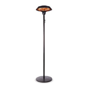 Outdoor life just feels right with freestanding electric patio heaters. Provides instant, steady, and quiet heat. Efficiency golden tube heats up to 12 sq. ft. Adjustable height and comes with tip-over and anti-skid protection. This stylish infrared heater is perfect for indoor and outdoor elegant luxury patio decoration.