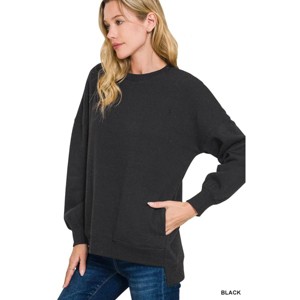 I am a Fashion junky Zenana Full Size Fleece Hi-low Boyfriend Sweatshirts with Pockets Plus Size - 1 of 3