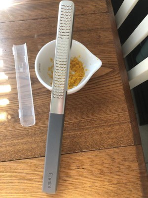 The Figmint Zester has quickly become one of my favorite kitchen tools! The design is sleek and modern in dark gray, and it feels incredibly sturdy in hand. The sharp blades make zesting citrus fruits effortless, producing fine, even zest every time without any mess. The protective shield is a great feature, ensuring safety when it's stored in the drawer. Cleaning is also a breeze, either by hand or in the dishwasher. This zester is a must-have for anyone who loves cooking or baking!