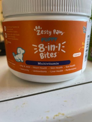 If you love your puppy from head-to-tail, Zesty Paws has eight great ways to help you show it! Puppy 8-in-1 Multivitamin Bites provide multifunctional support to help your puppy grow up Zesty. These chews support hip and joint function, heart health, skin and coat health, digestion, the immune system, antioxidant activity, liver health, and performance for small puppies. That's because this chewable functional supplement contains Glucosamine, Chondroitin, Bacillus subtilis, and a whole lot more!