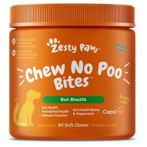 - Zesty Paws Chew No Poo Bites are chewables that may help as a poop eating deterrent, along with supporting gut health, immune function, and periodontal health.