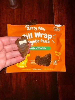 [This review was collected as part of a promotion.] I took my puppy to the vet for his one year physical and shots. The vet provided a pill I had to administer to my pup so it was the perfect opportunity to put the Zesty Paws Pill Wrap Prebiotic Paste to the test. My pup is a 5 pound Chihuahua, and he's a little bit spoiled and picky, but he LOVED the pill wrap flavor and ate it up without any issues! He thought it was a treat! I'm definitely going to be using this for any pills and medications he needs to take in the future!