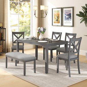 Zevemomo 6-Piece Wooden Dining Table Set,Including 1 Dining Table, 4 Upholstered Chairs and Wooden Legs Dining Table,1 Bench,for Dining Room, Grey