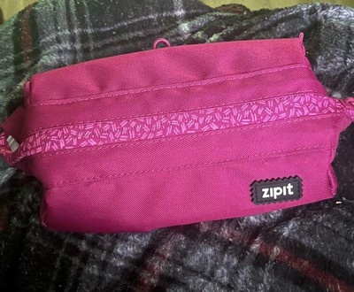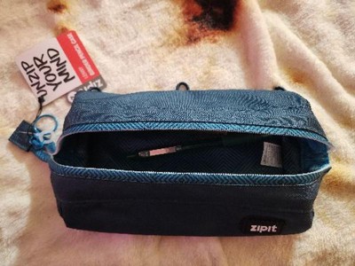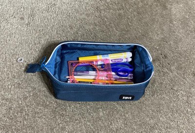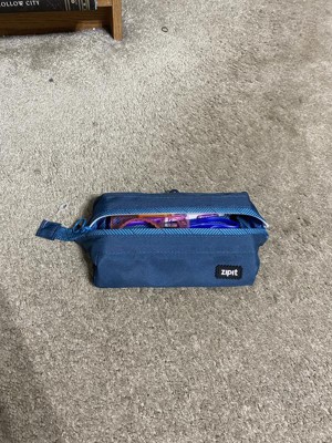 I am really impressed with the variety and quality of the Zipit pencil cases. This one has a sturdy metal frame that allows the case to stay open or closed in a symturdy shape. You can carry a lot in this case, including a decent sized sharpener etc. This will last a school year of abuse for sure!