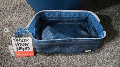 This pencil case is very tiny compared to so many others from this brand. I love the colors and the sturdiness of the zipper. I also love the metal pull-loop for the zipper. I don't like how after it's fully zipped, there's still a hole larger than a pencil-width open at the end where things could slip through. I do like the loops for putting it into a 3-ring binder. While I think the metal bracket idea is clever, it wouldn't really be that helpful in a school situation, since one usually just gets one or two items out then puts their pencil pouch back in their binder. Overall, this one is pretty average and I'm not sure I would buy it again and I likely wouldn't sing its praises in any recommendations either.