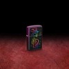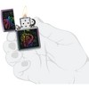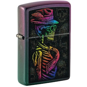 Unfazed by looming skulls, the dapper skeleton graces this Iridescent lighter with a captivating design through our Color Image process. Packaged in a gift box, it exudes style. For optimal performance, fill it with Zippo lighter fuel. Elevate your lighter experience With this authentic Zippo windproof lighter with an amazing click sound.