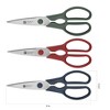 Assorted colors for any number of food prep tasks. Use for snipping herbs, cutting foods or opening packages, bottles, or jars. High quality stainless steel for corrosion resistance with symmetrical handles and dishwasher safe.