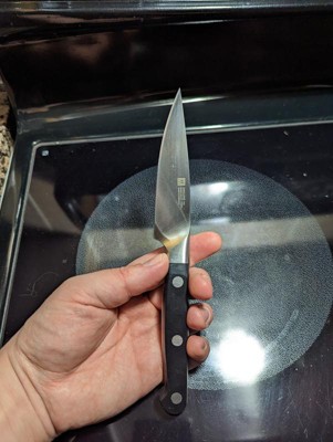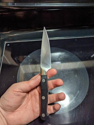 Bought this a few weeks ago as my old paring knife handle cracked. The blade material is razor sharp and stays that way with a quick honing every use. The balance is amazing. The feel of the handle is perfect. it's the perfect knife for tasks that require precision. It is the sixth knife of the Pro series I have purchased. They are all amazing and make food prep a breeze.