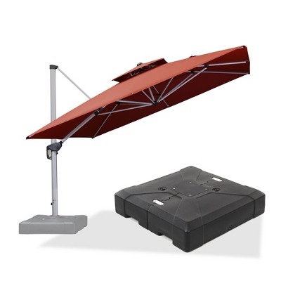 PURPLE LEAF 11ft Outdoor Umbrella with Base Patio Round Large Cantilever Umbrella Windproof Offset Heavy Duty Sun Umbrella for Garden Deck Pool