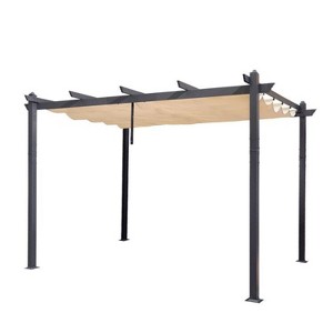 PURPLE LEAF 10' x 10' Outdoor Retractable Pergola with Sun Shade Canopy Patio Metal Grape Trellis Pergola Grill Shelter Gazebo for Garden Yard