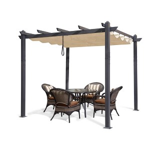 PURPLE LEAF 10' x 12' Outdoor Retractable Pergola with Sun Shade Canopy Patio Metal Grape Trellis Pergola Grill Shelter Gazebo for Garden Yard