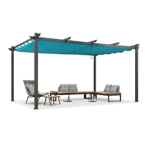 PURPLE LEAF 12' x 16' Outdoor Retractable Pergola with Sun Shade Canopy Patio Metal Grape Trellis Pergola Grill Shelter Gazebo for Garden Yard