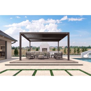 PURPLE LEAF 10' x 14' Outdoor Louvered Pergola Sun Shade Outside Canopy with Aluminum Roof for Hot Tub Backyard Garden Pavilion Patio Hardtop Gazebo