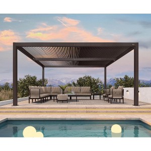PURPLE LEAF 12' x 16' Outdoor Louvered Pergola Sun Shade Outside Canopy with Aluminum Roof for Hot Tub Backyard Garden Pavilion Patio Hardtop Gazebo