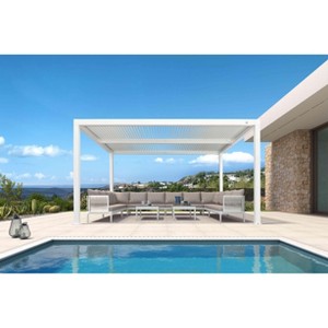 PURPLE LEAF 11' x 14' Outdoor Louvered Pergola Aluminum Gazebo Modern White Patio Metal Pergola with Adjustable Rainproof Hardtop for Garden Backyard