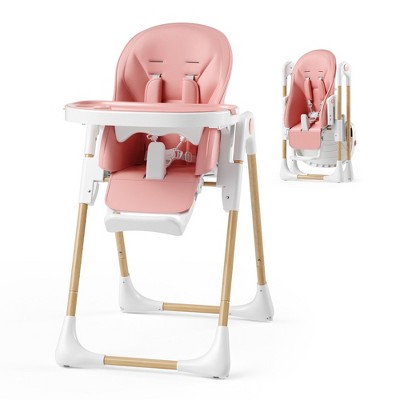 Foldable High Chair for Babies&Toddlers,PU Leather Highchair with Adjustable Backrest,Seat Height,Removable Tray,5-Point Safety Harness&Locking Wheels