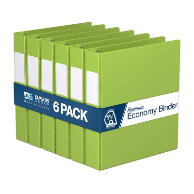 Premium Economy 2" Round Ring Binder 6pk Lime Green: Davis Group, Hard Cover, 400 Sheet Capacity, 2 Pockets