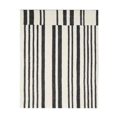 Ivory and Black Wool Abstract Hand Tufted Area Rug
