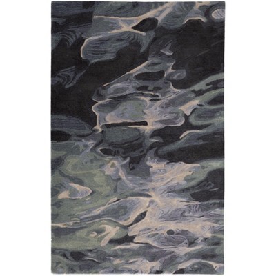 HomeRoots 2' X 3' Blue and Black Wool Abstract Hand Tufted Area Rug