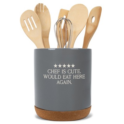 Elanze Designs 5 Five Star Review Chef Culinary Arts Ceramic Cork Bottom Gray Large Capacity Utensil Holder Crock for Countertop Storage, Stylish &