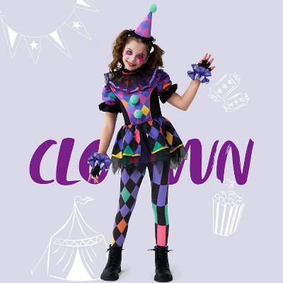 Joyfy Girls' Halloween Costume Dark Twisted Clown Costume Creepy Jester Outfit with Ruffles & Bells