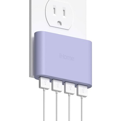 iHome Slim 4-Port USB Wall Charger, AC Pro Multiport Plug Adapter, Phone Charging Block with 4 Ports, Flat USB Wall Adapter for Home & Travel