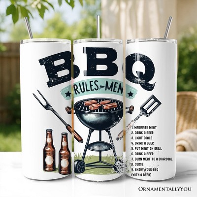 Funny BBQ Rules For Men 20oz Tumbler With Lid and Stainless Steel Straw, Backyard Grill Guide Humor Gift Cup | OrnamentallyYou