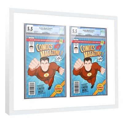 PosterPalooza | Comic Book Frame for 2 Graded Comics - White Wood with White Mat Comic Frame - 17x21