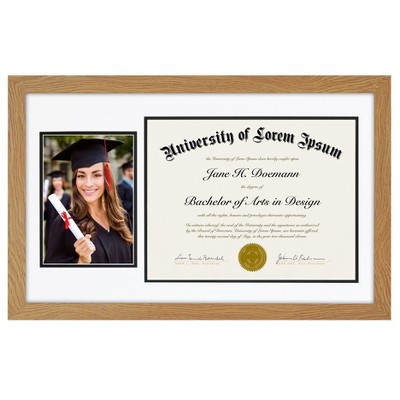 Americanflat 11x18 Oak Graduation Frame | 2 Opening Mat Displays 5"x7" Photo and 8.5"x11" Diploma. Tempered Shatter-Resistant Glass