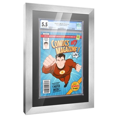 PosterPalooza | Comic Book Frame for 1 Graded Comic - Silver Wood with Black Mat Comic Frame - 12x17